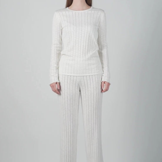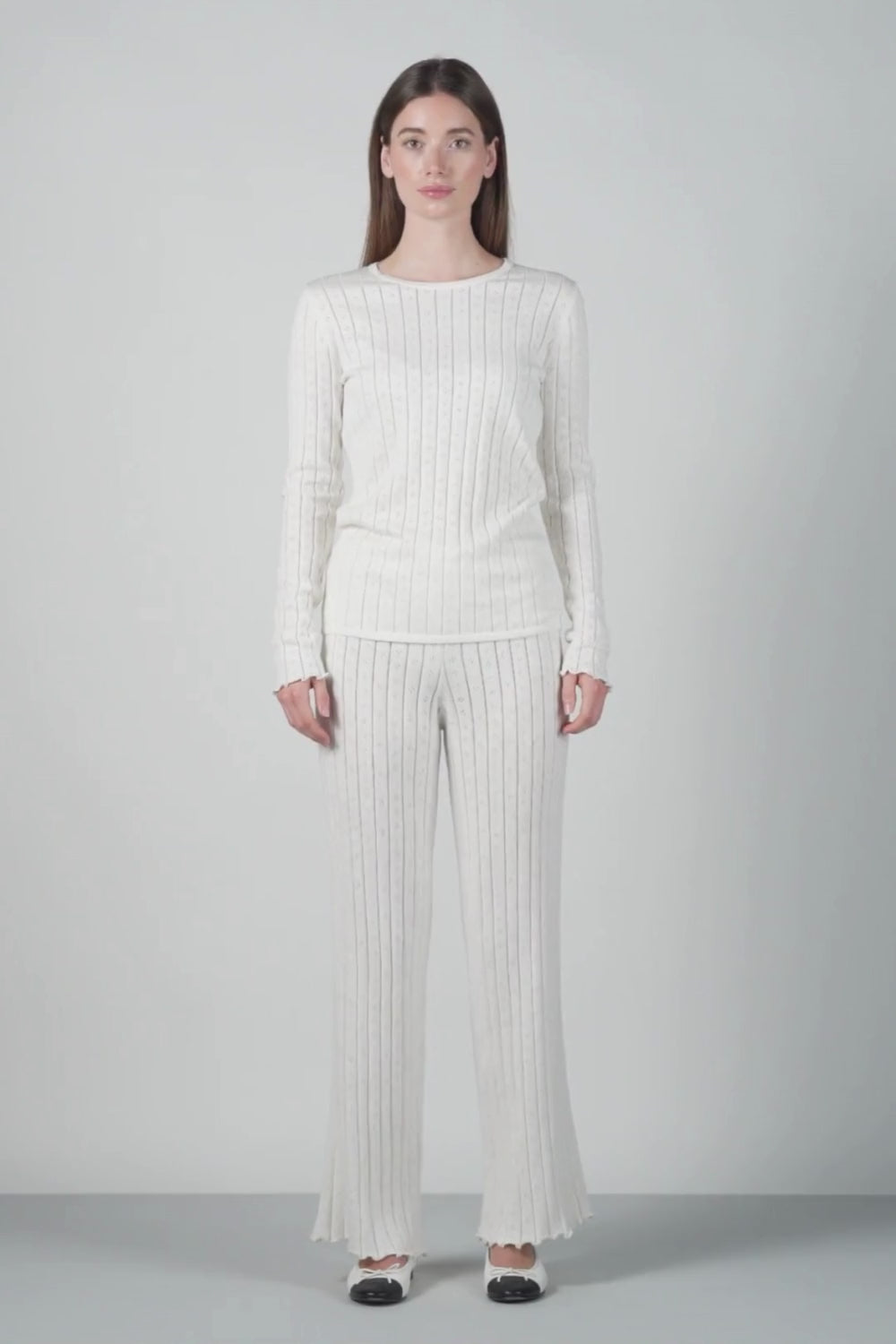 Kristin er den fineste basis bluse, der passer ind i enhver gaderobe. De bølgede kanter og pointelle detaljer giver denne basis bluse et enkelt og samtidig feminint look. Cashmere og bomuldsblandingen gør den blød og behagelig at have på.