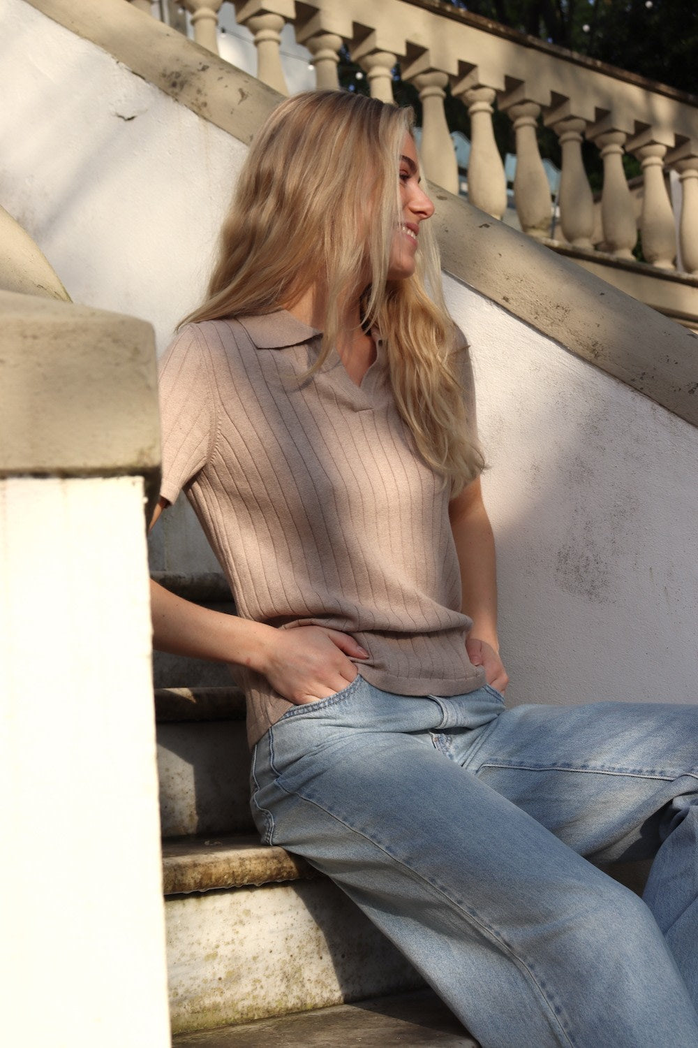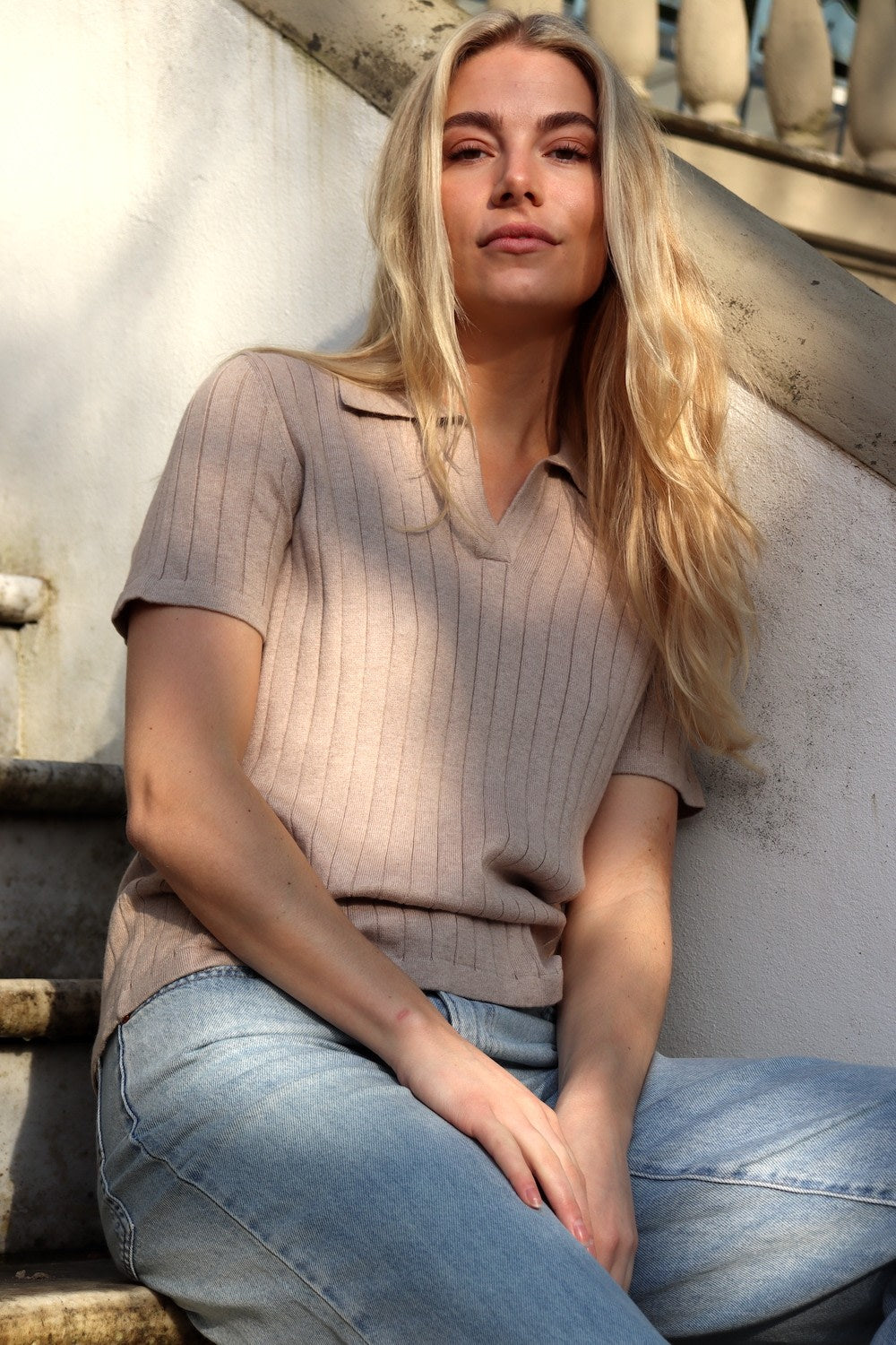 En skøn t-shirt med en elegant polokrave og korte ærmer. T-shirten er fremstillet i vores populære og velkendte cashmere/cotton kvalitet. Brug Gloria til både hverdag og fest. Vi elsker det simple look, hvor t-shirten er stylet med et par shorts eller vores Gerda Skirt for et lidt mere feminint look.