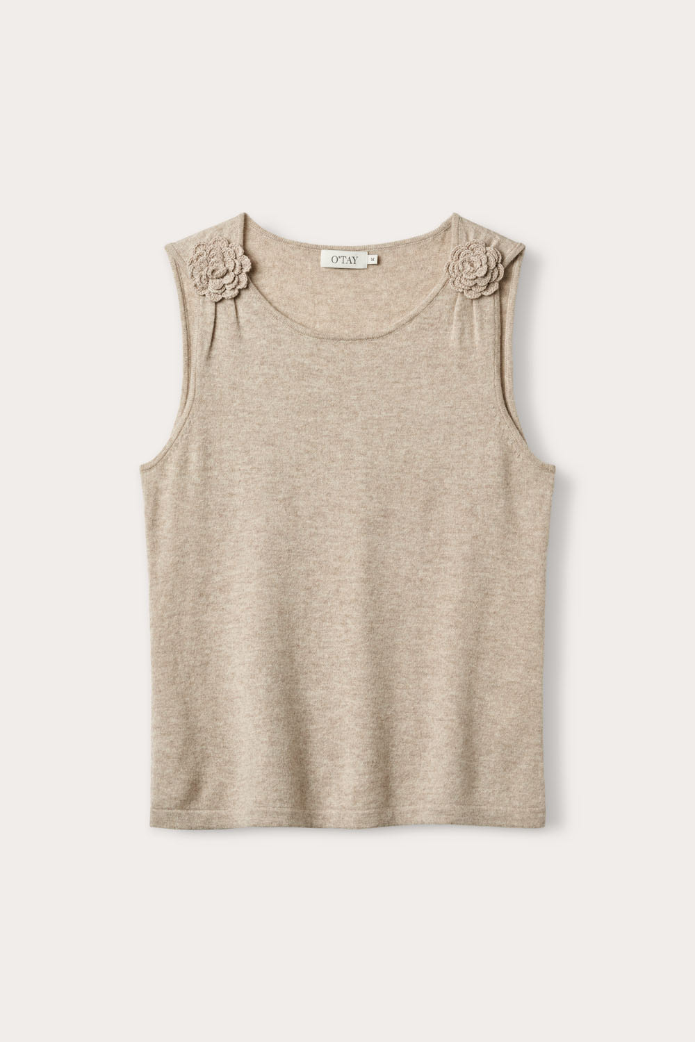 En smuk, feminin og sommerlig top med fine detaljer. Der er en smuk blomst på hver side af udskæringen ved brystet. Så blød og rar at have på. Hav den på med vores Galina Pants eller Benita shorts for det ultimative sommer outfit.