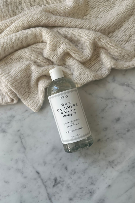 *Dette er en anbefalet guide til vask/pleje af dit cashmere og uld fra O'TAY. O'TAY kan på ingen måde holdes ansvarlig for eventuelle fejl/skader, der måtte opstå i forbindelse med vask/pleje.