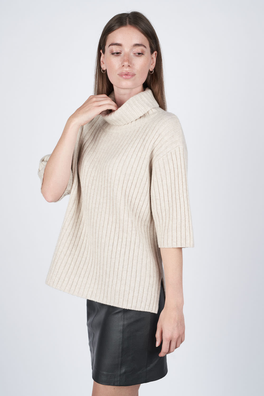 Irina T-shirt er en bluse med korte ærmer og er lavet i vores velkendte cashmere blend med 90% uld og 10% cashmere, som gør t-shirten blød og rar at have på. Her er der ikke noget, som kradser. T-shirten er med ribstrik og løs rullekrave, for et mere afslappet udtryk. Den elegante t-shirt kan nemt styles med bukser eller nederdel og en blazer udover på de helt kølige dage. En klassisk og tidløs style du vil elske i din garderobe.