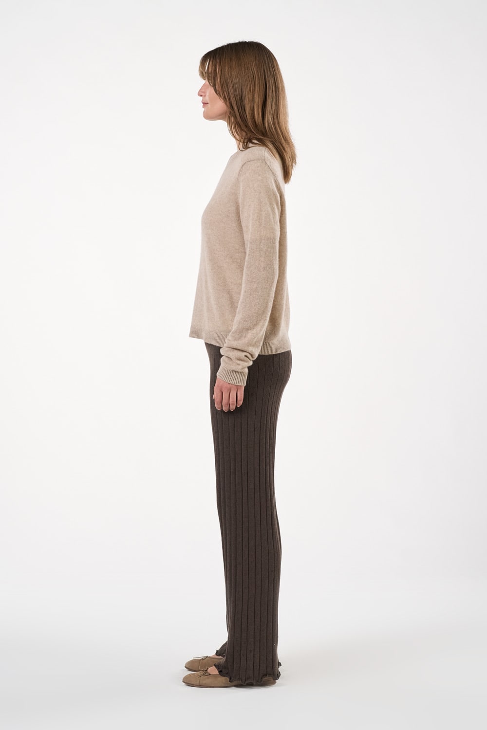 Det rene cashmere falder blødt om kroppen og giver en silkeagtig fornemmelse mod huden, mens den naturlige åndbarhed holder dig komfortabel i overgangsvejret. Med sin afslappede silhuet og diskrete elegance indfanger blusen essensen af silent luxury – en underspillet eksklusivitet, der ikke følger trends, men definerer dem.