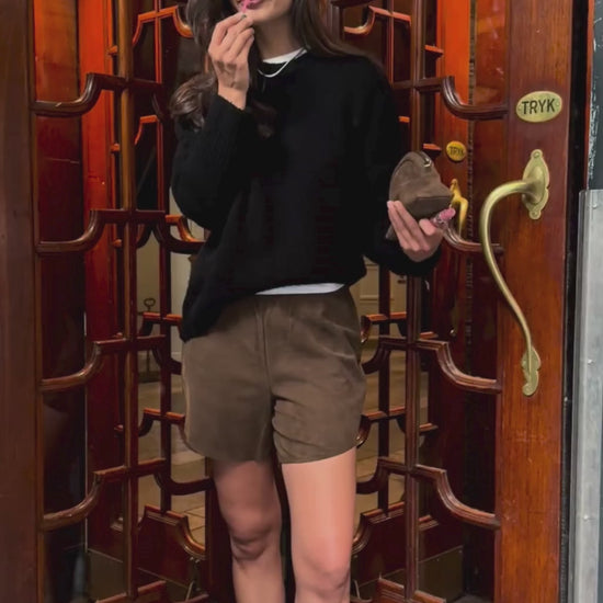 Norma Shorts er skabt i 100% gedeskind-ruskind. Det bløde ruskind tilføjer både struktur og dybde til dit look, samtidig med at det føles behageligt mod huden. Shortsene har et enkelt og tidløst snit med elastik i taljen, der sikrer en fleksibel og komfortabel pasform.