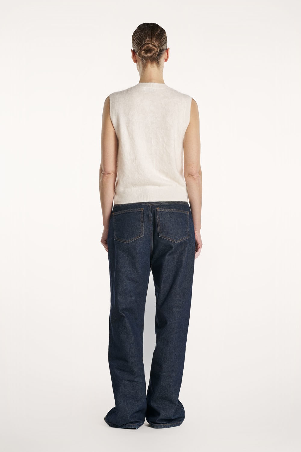 Paloma Vest er fremstillet i 100% brushed cashmere og kombinerer luksus med alsidighed. Den kan bruges alene som en elegant top eller stylet over en skjorte eller fin bluse. Vesten er lukket med vores velkendte perleknapper, som både er feminine og brugbare, hvilket giver et sofistikeret touch til ethvert outfit.